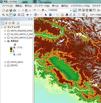 モザイクデータセットとしてまとめられたDEMは次の画面になります。