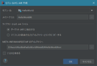- 「モジュールからJAR作成」画面で、メインクラスの指定、[ターゲットJARに抽出]するを選択し[OK]ボタンを押します。