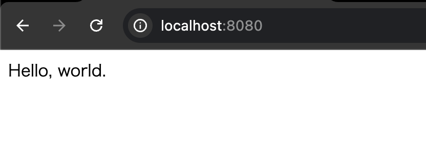 ブラウザで8080ポートにアクセスするとHello Worldのメッセージが表示されます。