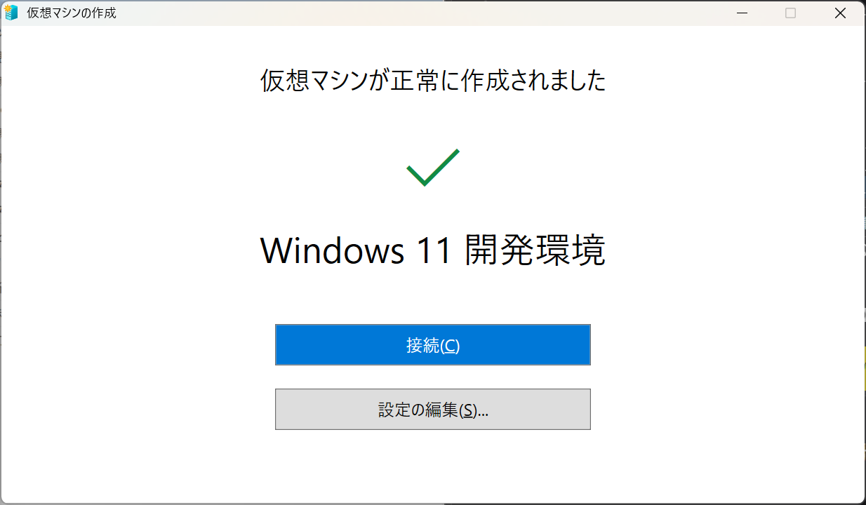 [接続]をクリックすると仮想ゲストが起動し、Windows 11開発環境が起動します。